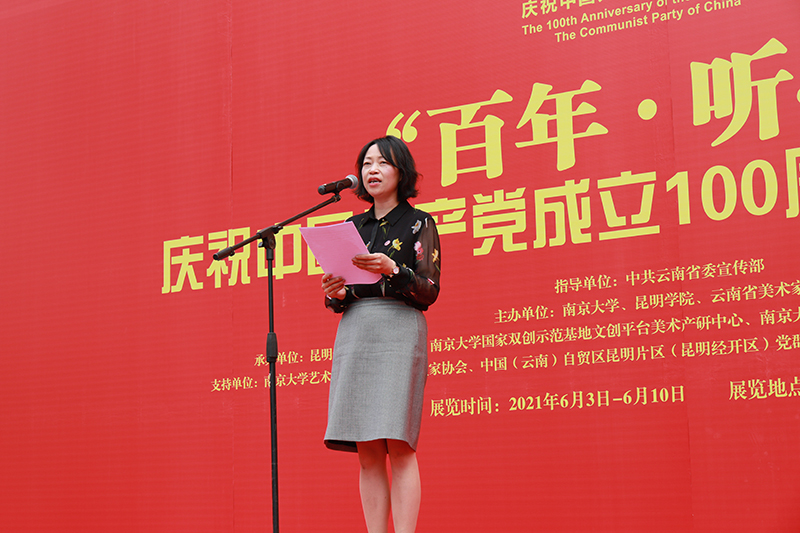 6日下午,由省委宣传部指导,1066vip威尼斯官网、南京大学、云南美术家协会共同主办的“百年·听心”庆祝中国共产党成立100周年美术作品展在云南省美术馆举行开幕式。学校校长丁文丽、党委副书记王文成、副校长马银海,南京大学副校长邹亚军,云南省美术家协会主席罗江等省市有关部门领导,江苏、云南两省多位知名画家出席开幕式。