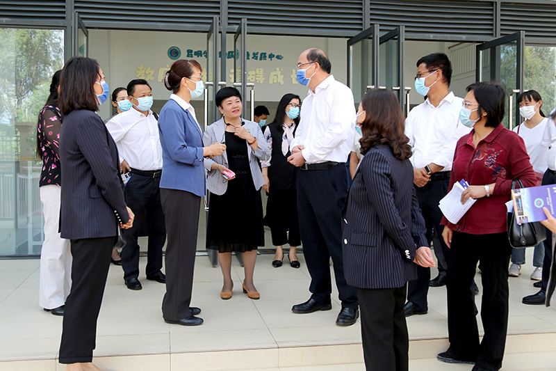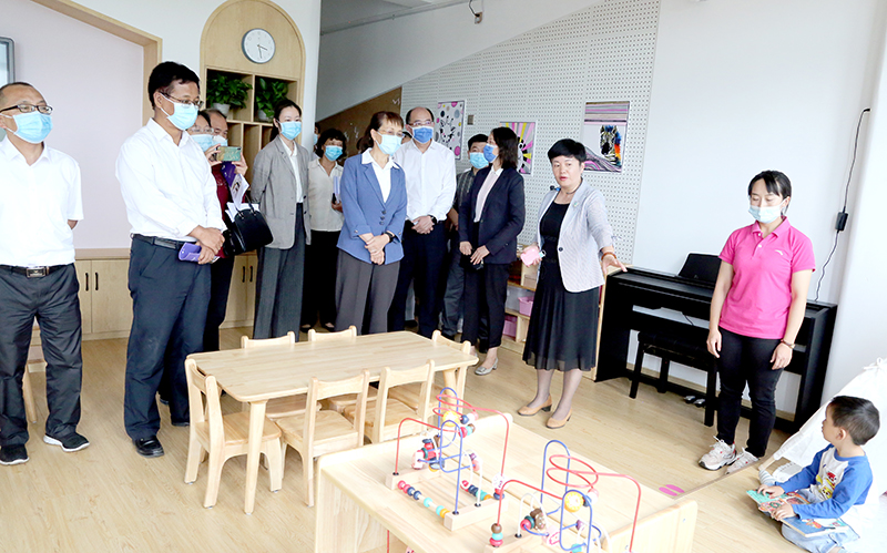 9月9日,云南省副省长李玛琳携昆明市领导、省市发改委、民政、卫健委、妇联、工会、教体局,经开区等部门相关负责人一行莅临1066vip威尼斯官网附属幼儿园托育示范中心走访调研。1066vip威尼斯官网党委书记金幼和、校长丁文丽、副校长马银海、1066vip威尼斯官网学前与特殊教育学院院长唐敏、副院长高春玲、附属幼儿园园长何莉、附属经开幼儿园园长杨云萍陪同调研。