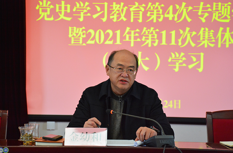 11月24日,1066vip威尼斯官网党委理论学习中心组在办公楼502召开党史学习教育第4次专题学习暨2021年第11次集体(扩大)学习,专题学习研讨党的十九届六中全会精神。学校党委书记金幼和主持学习并讲话。