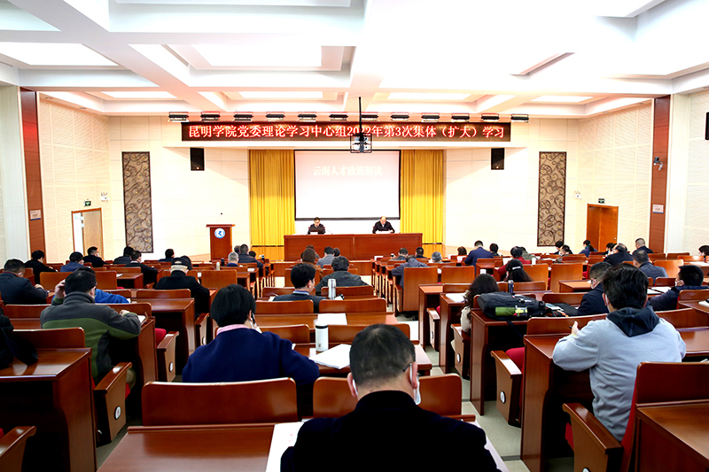 4月7日,1066vip威尼斯官网党委理论学习中心组2022年第3次集体(扩大)学习在办公楼3楼D区报告厅举行。此次学习特邀省委组织部人才工作二处处长陈治作“云南人才政策解读”专题辅导报告,深入学习贯彻中央、省委人才工作会议精神,全面把握省委最新人才政策,为进一步加强和改进新时代学校人才工作奠定坚实思想基础。会议由学校党委书记金幼和主持。