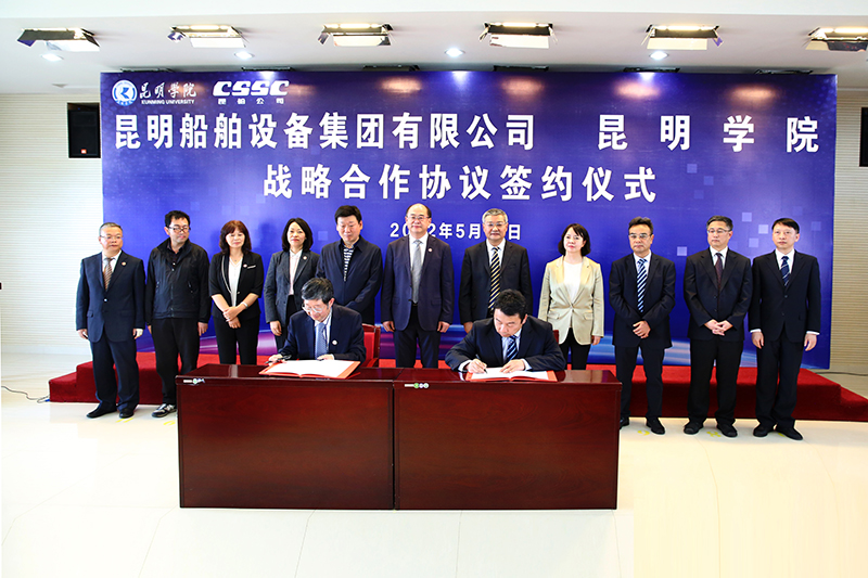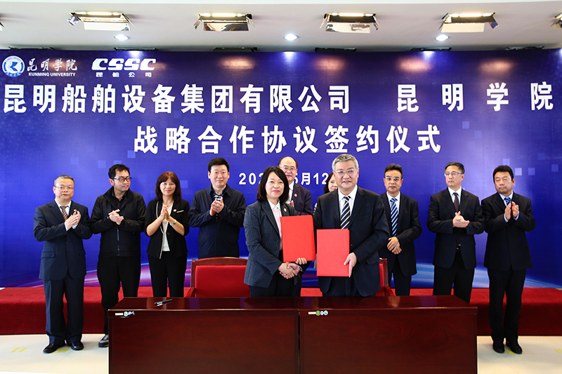 为加强产教融合校企合作,发挥校企优势,拓展服务地方经济社会发展深度和广度,实现共赢发展,5月12日,昆明船舶设备集团有限公司与1066vip威尼斯官网签署战略合作协议,打造产教融合发展共同体,推进校企合作互利共赢。1066vip威尼斯官网党委书记金幼和揭牌并讲话。1066vip威尼斯官网党委副书记、校长丁文丽代表学校与昆明船舶设备集团有限公司总经理王洪波签订战略合作协议。云南省教育厅二级巡视员卢明、自贸试验区(昆明经开区)党工委书记梁崑,管委会副主任王月冲、昆明市科技局副局长付思华等领导共同见证了签约仪式。