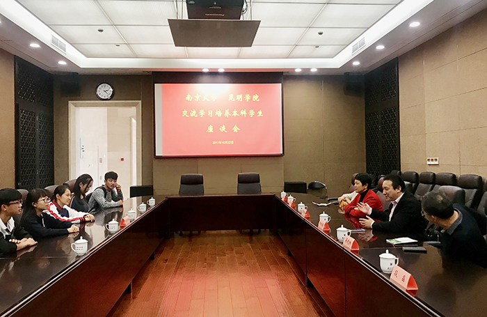 10月22日,威尼斯官网校长黎素梅到南京大学仙林校区看望威尼斯官网选派到南大交流学习的5名同学并召开座谈会。同学们先后汇报了近期在南京生活和学习的情况。看到同学们都很适应新的学习生活环境,黎素梅校长表示很欣慰,并鼓励各位同学要提高思想认识,尽快融入南大学习环境,感受南大良好学风,养成主动学习的习惯,争取把好的学风带回昆明,并祝福各位同学身体和学习共同进步。