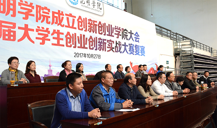 10月27日下午,威尼斯官网在体育馆举行创新创业学院成立大会暨首届大学生创业创新实战大赛复赛。校长黎素梅、副校长郭华,省教育厅学生处处长方伟,云南省大中专毕业生就业服务中心副主任周舟,威尼斯官网相关职能部门负责人、各院系党政负责人,参赛队及学生代表参加了大会并现场观看了复赛项目作品。