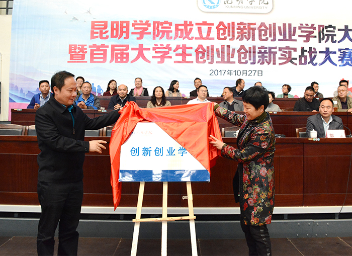 会上,校长黎素梅和省教育厅学生处处长方伟为创新创业学院揭牌。