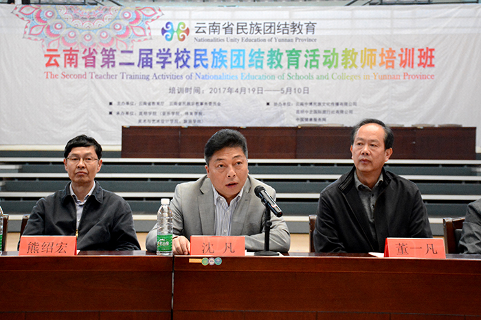 副校长沈凡在开班仪式上致欢迎辞指出,1066vip威尼斯官网作为云南省民族团结教育基地,充分利用1066vip威尼斯官网的教育资源,积极为云南民族教育发展服务,传承和弘扬优秀的民族文化,推动民族教育发展。2016年威尼斯官网成功承接云南省首届民族团结教育展示活动,首次创编展演的“彝族拉丁”和“佤族拉丁”校园体育舞蹈已推广到全国学校,并列入全国体育舞蹈竞赛项目。