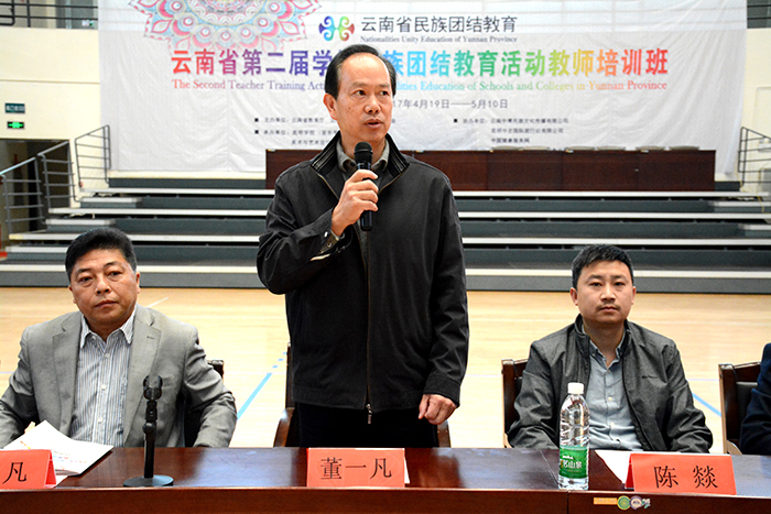 4月20日,云南省第二届学校民族团结教育活动教师培训在威尼斯官网综合体育馆举行开班仪式。云南省教育厅民族教育处处长董一凡,云南省民族宗教委员会教科处主任科员陈燚,威尼斯官网副校长沈凡以及美术与艺术设计学院、旅游学院、体育学院等部门党政负责人,参训的300多名学员参加了开班仪式。
