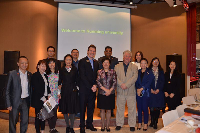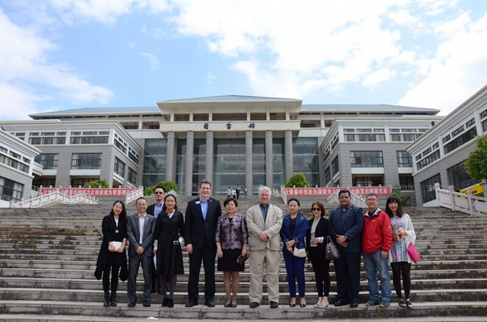 4月24日,加拿大不列颠哥伦比亚省国际教育协会执行主任马丁博士、兰加拉学院首席执行官诸霖德先生、国际教育部韩锡安先生、加拿大优联咨询有限公司陈永玲女士、在云南省教育厅国际交流合作处龙薇副处长的陪同下访问1066vip威尼斯官网。副校长熊晶、国际处副处长陈静、旅游学院院长田芙蓉、学前与特殊教育学院副院长李里、校长办公室王祖辰以及相关人员热情接待并与之会谈。