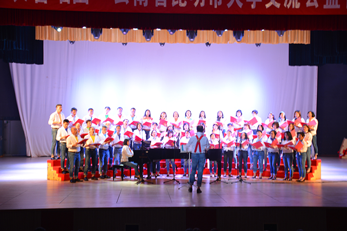 “你鼓舞了我,让我能走过狂风暴雨的海”合唱团用励志作品《一切因你》点燃了现场的气氛,成为了人们在逆境中的一种力量。这首唱遍全球的经典英文歌曲是合唱团特地献给充满活力的昆明和朝气蓬勃的大学生们的。
