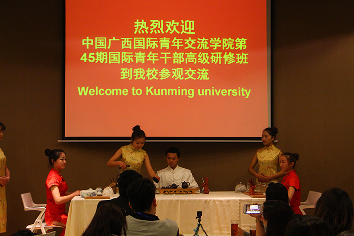 研修班师生一行分别参观了威尼斯官网的心里健康教育与咨询中心、体育馆、青年中心、滇池流域生态文化博物馆、阳光中庭及酒水试验等场所。在威尼斯官网心理健康教育与咨询中心,研修班师生参观并体验了咨询室的团体音乐教室、心理宣泄、个体音乐放松和沙盘等多个项目,现场气氛十分热烈。博物馆的参观交流加深了各国师生对滇池流域的自然环境、历史人文等的认识。阳光中庭里丰富多样的云南特色植物,引起了各国师生浓厚的兴趣,大家纷纷合影留念。