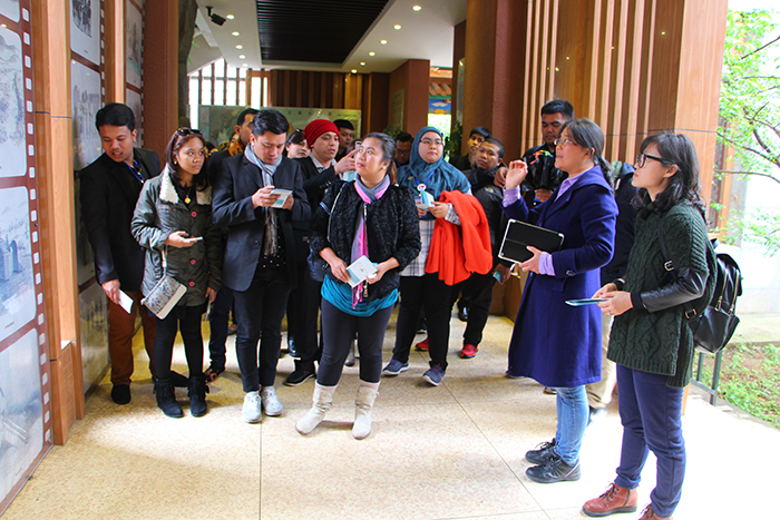 3月29日,应中华全国青年联合会邀请,文莱、印尼、菲律宾、泰国国际青年组织青年干部研修班工作人员及学员共40人到威尼斯官网参观交流。团省委相关人员、威尼斯官网团委书记及外国语学院志愿者接待了研修班一行,对到访的各国师生表示热烈欢迎,鼓励各国学生们积极交流,了解彼此的文化。