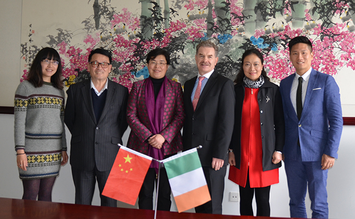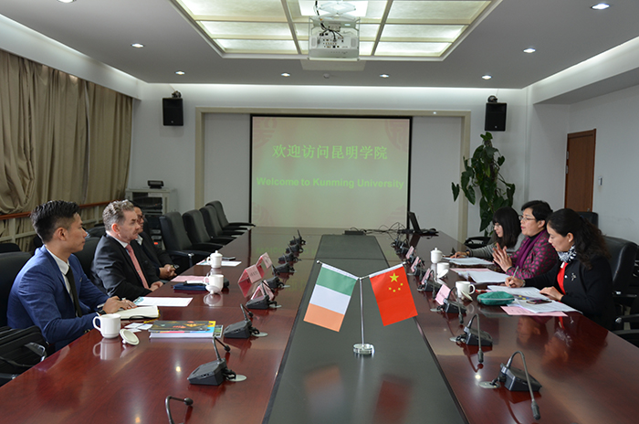 3月29日,爱尔兰阿斯隆理工学院校长卡荣•欧•凯恩教授、爱尔兰阿斯隆理工学院亚洲区总监孟晶先生来威尼斯官网访问,云南杨丽坤文化产业投资(集团)有限公司董事长唐凤楼先生陪同访问。