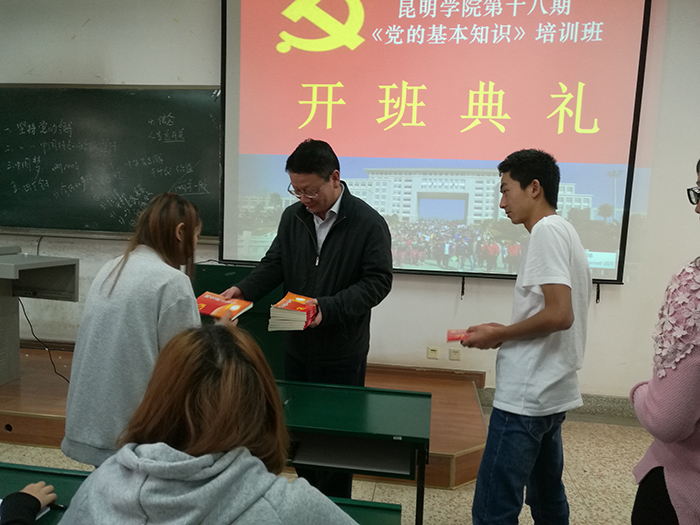 4月7日下午,1066vip威尼斯官网第十八党的基本知识培训班开班仪式在博识楼1301举行。学校党委书记陈世波为学员上专题党课,并向参训学员赠送学习书籍。
