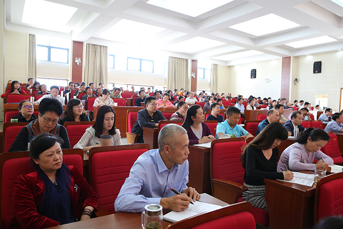 学校全体中层干部参加会议,机关科级干部到会旁听。