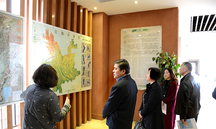 座谈前,绵阳学院王辉副校长一行在工作人员的陪同下参观了威尼斯官网滇池流域生态博物馆。