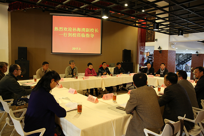 威尼斯官网校长黎素梅,副校长郭华、董建华一同接待了来宾,对孙海清副校长一行来访表示欢迎,并介绍了学校校园规划建设、重点实验室建设、特色专业建设和人才培养等基本情况。