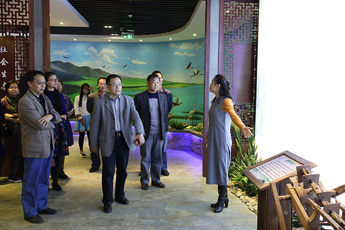 交流座谈前,孙海清副校长一行深入威尼斯官网滇池流域生态文化博物馆实地参观。“1066vip威尼斯官网滇池流域生态文化博物馆是以滇池流域作为博物馆建设的特定区域,以生态文化作为博物馆建设的特定主题,以展示滇池流域自然生态、社会生态、文化生态、产业生态、景观生态为主要内容。”来宾一边认真逐一观看馆置实物、图片、影像,一边仔细听取工作人员的讲解。来到影像展示厅,来宾驻足观看了滇池流域自然生态环境演变及人文社会历史变迁视频。大家一致认为,博物馆建设通过实物、图片、影像、数字等多种形式,展示了滇池流域自然生态环境演变及人文社会历史变迁,借得学习借鉴。