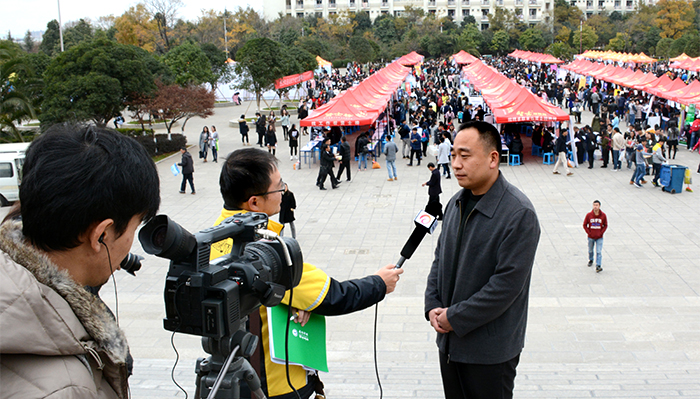 在招聘会现场,副校长郭华就威尼斯官网毕业生就业创业工作,接受云南电视台、昆明电教育视台专访。副校长马银海、宣传部、招生就业处及各院系负责人与受邀参加招聘会的县区教育局领导和部分高校招生就业处负责人就人才培养、创新创业等主题进行了座谈。