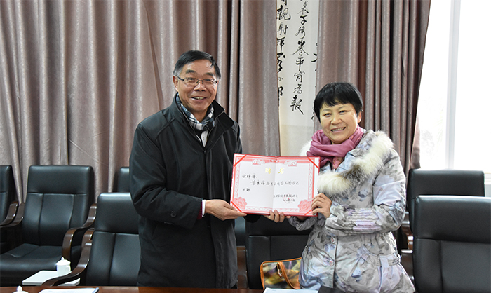 12月22日,在刚刚完成了新一届老教授协会换届工作后,1066vip威尼斯官网老教授协会特聘请校长黎素梅为名誉会长。新当选的会长张云权亲自将聘书送至黎校长手中。