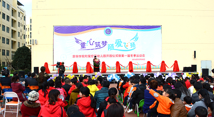立于昆明,就应服务昆明,身处经开区,就该为经开区的建设和发展做出应有的贡献。为解决经开区居民和劳务人员子女入园难的实际困难,学校依托学前教育与特殊教育学院在学前教育领域优势资源,以建设“理念先进、保教科学、师资专业、设施一流、收费合理”的高品质普惠性幼儿园为目标,积极开展附属幼儿园的筹建工作。在昆明市政府、云南省教育厅、昆明市经开区管委会、昆明市教育局的大力支持和帮助下,1066vip威尼斯官网附属经开幼儿园于今年9月正式向社会开门办学,迎来了第一批入园就读的小主人。目前已有在园幼儿210名,下学期将还要招收4个班,其中有一个特殊儿童班级,开展早期融合教育。