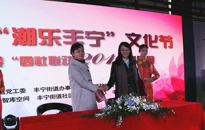为更好总结试点工作经验,提升社区工作服务水平,不断发挥辖区文化资源优势,着力打造文化品牌,开展文化惠民、文化乐民活动,丰宁街道党工委、办事处联合1066vip威尼斯官网社会管理学院于2016年12月21日在108智库空间美术馆举办了“第三届‘潮乐丰宁’文化节暨社区建设‘四社联动’2016成果展”。校长黎素梅出席活动,并为“1066vip威尼斯官网教学实习基地”揭牌,副校长董建华、副校长马银海及校办主任杨斌、教务处处长解永刚、社会管理学院党政领导一行参加本次活动。