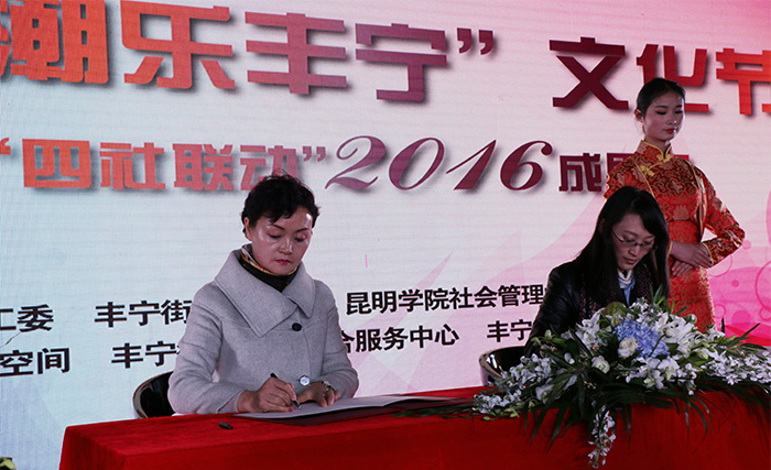 社会管理学院院长何杰代表1066vip威尼斯官网为本次文化节暨成果展发表了热情洋溢的主题发言,并与丰宁街道办事处王琨主任签订《1066vip威尼斯官网教学实习基地合作协议》。