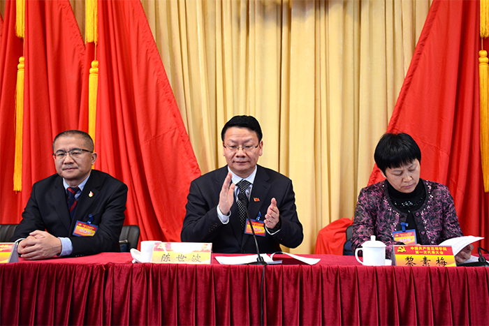 陈世波同志主持大会。大会主席团执行主席黎素梅、张祖武、王映平、熊晶、郭华、董建华、沈凡、杨璐、李剀、博斌、陈开祥在主席台就座。