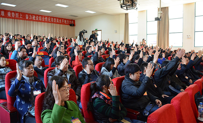 随后,参会代表举手表决,一致通过了关于中国共产党1066vip威尼斯官网委员会工作报告的决议。大会批准陈世波同志代表中国共产党1066vip威尼斯官网委员会所作的报告。决议指出,报告站在新的历史起点上,确定了继往开来、凝心聚力、攻坚克难、乘势而上,奋力建设综合性应用型高水平地方大学的主题,贯彻了中央精神,体现了省委要求,符合新形势下新建地方本科院校发展趋势和1066vip威尼斯官网实际,顺应全校广大党员干部和师生期盼。报告全面总结了过去8年的工作成就和主要经验,客观分析了学校改革发展面临的形势,科学谋划未来,提出了今后5年的总体要求、发展目标、战略举措和主要任务,是指导威尼斯官网按照转型发展、内涵提升、重点突破的思路,积极稳妥推进学校综合改革,全面提升学校核心竞争力,实现学校又快又好发展的行动指南。
