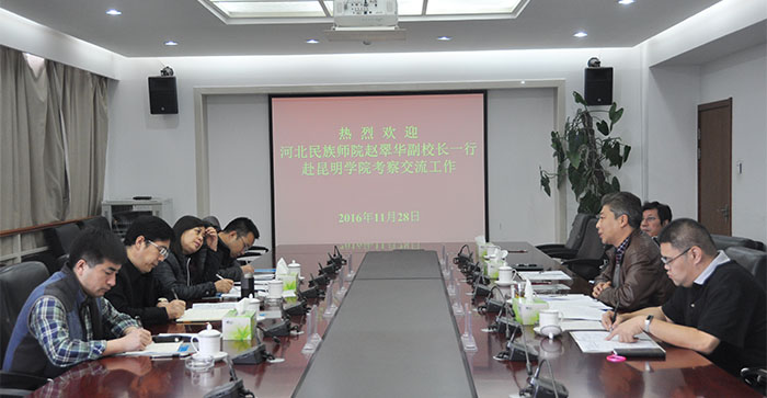 11月28日,河北民族师范学院赵翠华副校长率教务处、转型发展办公室、商学院人力资源专业负责人一行4人赴威尼斯官网考察本科教学工作合格评估迎检工作、学校转型发展、教师教育专业改革探索与实践。学校副校长马银海、副校长沈凡、对口交流单位相关人员参加接待交流。