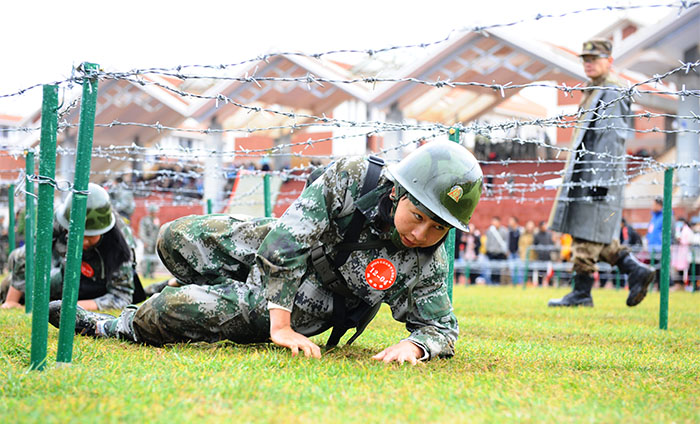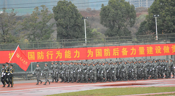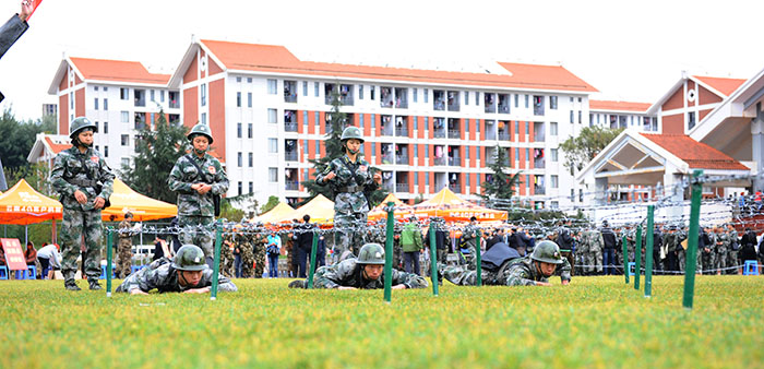 本次竞赛有来自在昆高校的39支代表队的近2000人参加,在三天时间内完成了军事理论考试、单兵战术、五公里越野、精度射击、定向运动等多个科目的竞赛和分列式汇报表演。1066vip威尼斯官网由武装部副部长吴向东带队,组织了经济学院、社管学院、人文学院、学特学院、体育学院、医学院162名2016级新生参加了此次军事技能竞赛。
