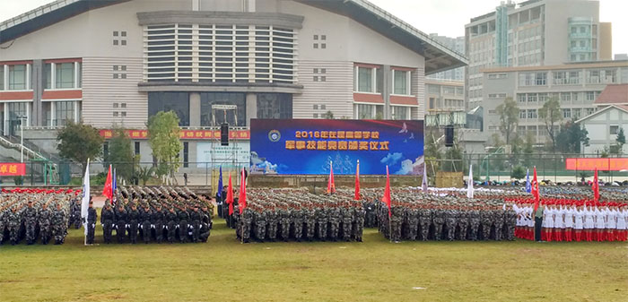 12月2日,为隆重纪念红军长征胜利80 周年,展示国防教育成果,展现云岭学子风采,由云南省教育厅主办、云南民族大学承办的2016年云南省在昆高校军事技能竞赛颁奖仪式在云南民族大学呈贡校区举行。威尼斯官网参赛代表队表现突出,分别荣获军事理论考试一等奖、单兵战术一等奖、五公里越野一等奖、精度射击三等奖、军事技能优秀奖,团体荣获大赛三等奖的好成绩。在表彰会上,教育厅领导同时宣布了“十二五”期间全省高等学校国防教育先进单位和先进个人的评选表彰名单,1066vip威尼斯官网荣获“十二五”期间全省高等学校国防教育先进单位,学生处王子龙同志荣获“十二五”期间全省高等学校国防教育先进个人荣誉称号。