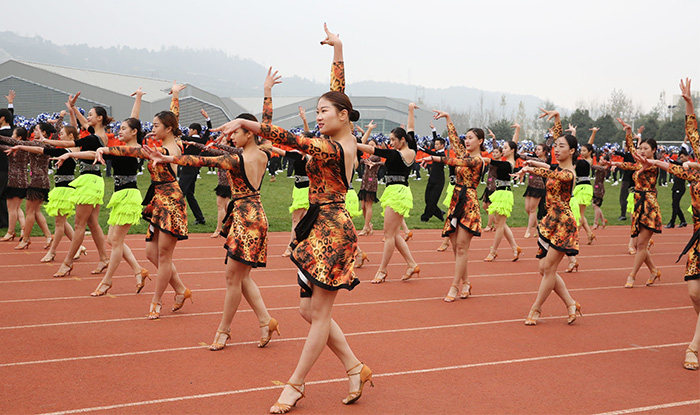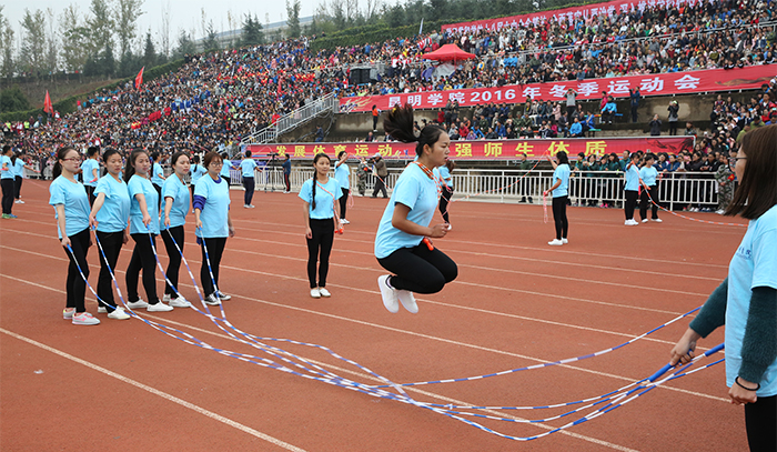 开幕式上有充满青春活力的教职工团体操、学生团体操及花式跳绳的表演,师生兴致勃勃地参观精彩演出。