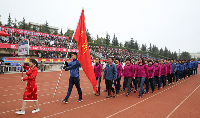 校长黎素梅为运动会开幕式致辞。她代表学校党委行政向出席本次运动会开幕式的领导、来宾表示热烈欢迎,向筹备运动会的全体工作人员和全体志愿者表示衷心的感谢,并回顾了学校一年来在体育运动方面取得的成绩。黎校长说,一年来威尼斯官网成功承办了多项全省体育运动赛事,取得了优异的成绩,得到了上级主管部门的充分肯定和社会各届的广泛赞誉。在体育学院和工会俱乐部的共同努力下,在广大教职工和同学们的积极参与下,威尼斯官网的游泳、篮球、足球、瑜伽、羽毛球、乒乓球、网球、竞走等群众性体育运动蓬勃开展,形成了全民健身的浓厚氛围。这次运动会是全体昆院人的一次运动盛会,是各位运动员展示自我的舞台,是全体师生员工共享运动的快乐节日。体育运动不仅能够强身健体,陶冶情操,培养团队精神,锻炼意志,铸就品格,还能从中获得健康体格和愉悦心情。无论是争金夺银的荣耀,还是重在参与的精神,我们付出的每一滴汗水都将成为快乐的源泉。希望全体运动员发扬“友谊第一、比赛第二”的精神,发挥体育竞技水平,弘扬体育道德风尚,尊重对手,尊重裁判,奋力拼搏,赛出水平,赛出风格,希望各位裁判员认真履职,公正裁决。最后,黎校长预祝参赛选手们取得好成绩,预祝运动会圆满成功,祝大家健康快乐。