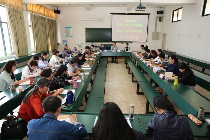 在认真听取马克思主义学院和各部门情况汇报及黎校长讲话后,陈世波书记希望认真抓好黎校长讲话精神的贯彻落实,同时提出了三个方面的要求:第一,要高度重视思想政治理论课建设。中央高度重视,课程方案和教材都由中央审定,这是其他任何课程不可比拟的,这也是中国特色高等教育的重要标志,一定要理直气壮加强党的思想政治理论教育教学。学校党委、行政高度重视,经费、人才、进修等等方面都给予大力支持,没有任何障碍。思政课教师要高度重视,增强责任感、使命感、光荣感。习近平总书记在《哲学社会科学工作座谈会上的讲话》,进一步把马克思主义提到了很高的地位,一定要引起高度重视,加强学习,真正做到真学、真懂、真信,入脑入心,把讲话精神贯彻到每一门课的教学中;大家备课材料的准备、讲课的艺术、课赛的效果等等都不错,取得这些成绩不容易,但还要提升,为什么现在的思政课教学与过去相比存在某些差异,如何引起学生思考,真正给学生留下印象,要作为一个问题研究。第二,要深化改革。中央和云南省都对思政课建设提出了很高的要求,学院和直属党支部都要认真抓好落实。学院层面还有很大的改革空间,紧密结合学校、昆明市、云南省的实际,紧密结合国内外形势的发展,可以做的文章很多。每个学校面临的情况可能大同小异,关键在于有没有动力,有没有真正用心去做。师资不足等等问题都可以解决,请相关部门支持,进一步整合校内资源,多方面想办法解决。教师进修学习、学历提升等问题,年轻教师要增强主动性,现在机会很多、很好,要克服困难,努力提升自己。全体老师都要把主要精力用在提升教学、科研能力上。第三,要办出特色。要充分利用校内、地方资源,找好五门课的结合点,深化教育教学改革,探索特色发展之路,形成人无我有的特色和有影响力的品牌。校内的滇池流域生态文化博物馆、经开区的云内动力等企业、云南陆军讲武堂等地方历史文化场馆,都是我们办出特色的重要资源。要主动发声,就社会、领导关心关注的问题加强研究,在地方媒体主动发声,再加上实际的成果,逐渐扩大影响。按照学校“十三五”内涵建设、转型发展和重点突破思路,思政课建设能不能有更大提升?学校精品课程《毛泽东思想和中国特色社会主义理论体系概论》能不能更上一层楼?要再下功夫,勇于拼搏,敢于创新,办出特色。其他问题,要多加强沟通协调,请各部门大力支持。