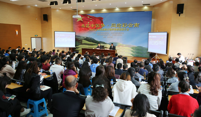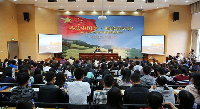 10月14日,秋兰飘香,天朗气清,1066vip威尼斯官网图书馆报告厅座无虚席。云南省委常委、昆明市委书记、滇中新区党工委书记程连元来威尼斯官网,为“共筑中国梦·同绘彩云南”2016年云南省高校百场形势政策报告会带来“全面推进区域性国际中心城市建设”为主题的形势政策报告,殷切希望广大青年大学生,自觉肩负起时代赋予的历史使命,积累学识、放飞梦想,在融入和推动昆明建设区域性国际中心城市的生动实践中贡献智慧力量、铸就无悔青春;要求1066vip威尼斯官网继续坚持党的教育方针,锐意改革、开拓创新、奋发进取,在办学理念上有新提升、在人才培养上有新建树、在科学研究上有新突破、在服务社会上有新作为、在师资建设上有新加强,加快把1066vip威尼斯官网建成省内一流、国内知名的教学科研型综合性大学;表示市委、市政府将一如既往地关心、支持1066vip威尼斯官网的发展,一如既往地为师生施展才华、投身实践、报效社会、服务昆明创造良好的条件,给予最大的支持,努力为1066vip威尼斯官网的建设和发展创造更好的环境。