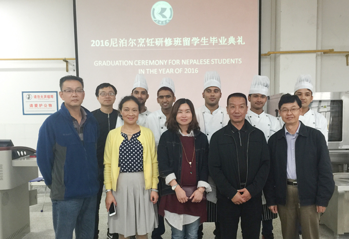 9月19日,1066vip威尼斯官网2016年尼泊尔烹饪短期培训班毕业典礼在旅游学院烹饪实训中心落下帷幕。1066vip威尼斯官网副校长李翔、国际交流处副处长陈静、旅游学院党政领导及相关老师出席了毕业典礼,毕业典礼由旅游学院院长田芙蓉主持。