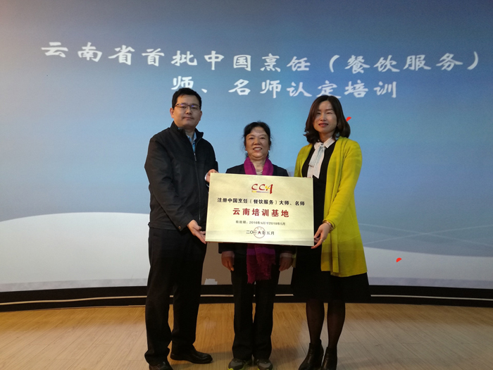 最后,由中国烹饪协会副秘书长 、教育部全国餐饮教育教学指导委员会秘书长张大海先生为1066vip威尼斯官网授牌。由田芙蓉和周永碧一起接牌,自此中国烹饪协会云南省注册中国烹饪大师、名师培训基地落户1066vip威尼斯官网。开班典礼结束后,培训正式开始。