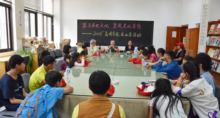 为充分发挥学校关工委“五老”优势,在青少年中广泛开展社会主义核心价值观教育活动,7月8日,由1066vip威尼斯官网关工委、离退休工作处、学校工会举办的以“学习历史文化、坚定文化自信”为主题的“教工子女励志夏令营”在昆师路校区顺利开营。学校关工委副主任何华致开营词,离退休党总支副书记张惠芬介绍了本次活动的重要意义和行程安排。本次夏令营成员主要由威尼斯官网教工子女小学五年级至初中三年级学生组成,参加人数40余人。