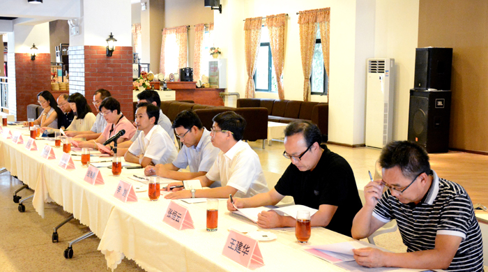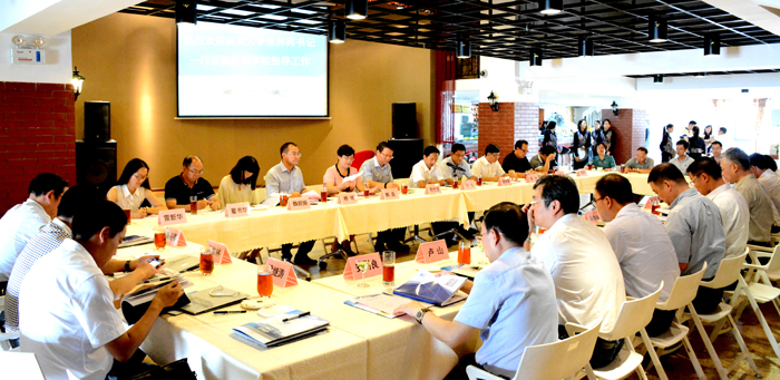 7月14日,南京大学党委书记张异宾、副校长薛海林率党委宣传部、党办、校办、校团委、化学化工学院、生命科学学院、医学院、商学院、经济学院等部门负责人到威尼斯官网交流指导并洽谈工作。威尼斯官网党委书记陈世波、校长何华,副校长熊晶与来宾在旅游学院酒水实验室举行座谈。
