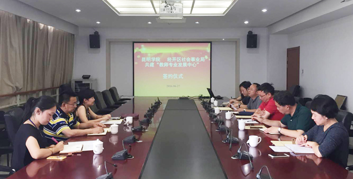 校地合作共建“教师专业发展中心”,是为了认真贯彻落实《云南省乡村教师支持计划(2015-2020年)》(云政办发[2015]110号)和《教育部关于加强师范生教育实践的意见》(教师[2016]2号)的精神和要求,同时也是为了深入推进威尼斯官网教师教育改革、创新教师培养模式、建立师范生全学段学习实践制度,有效解决师范类专业学生培养封闭、培养主体单一、教育教学实践资源分散等问题的重要举措。经开区是继安宁市以后第二个与威尼斯官网开展校地合作,共建教师专业发展中心”的单位,今后,威尼斯官网与经开区将在师范生培养、在职中小学教师(特别是乡村教师)能力素质提升、中小学教师“国培计划”以及其它各相关领域开展深入合作,真正实现“优势互补、资源共享、互惠双赢、共同发展”的合作目标。