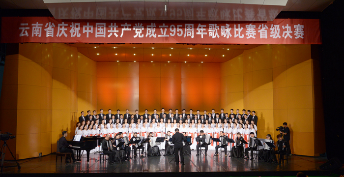 6月26日,云南省庆祝中国共产党成立95周年歌咏决赛在云南艺术学院实验剧场落下帷幕。威尼斯官网洋浦合唱团演唱的《忆秦娥•娄山关》和《太行山上》荣获云南省庆祝建党95周年歌咏比赛省级决赛一等奖。