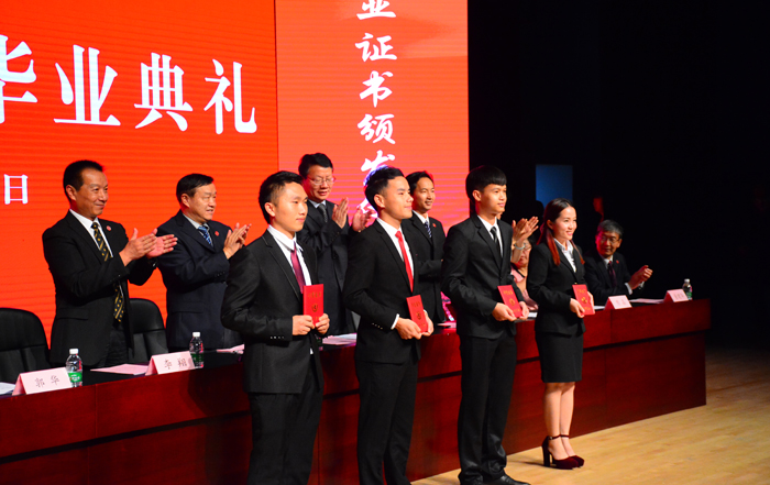副校长马银海在会上宣读《1066vip威尼斯官网关于审定和授予2016届全日制本专科毕业生毕业资格和学士学位的决定》。全体校领导为毕业生代表颁发毕业证书。经1066vip威尼斯官网第二届学术委员会学位评定委员会委员审定通过,2016年,全校共有3606名学生获得本科毕业资格、961名学生获得专科毕业资格。