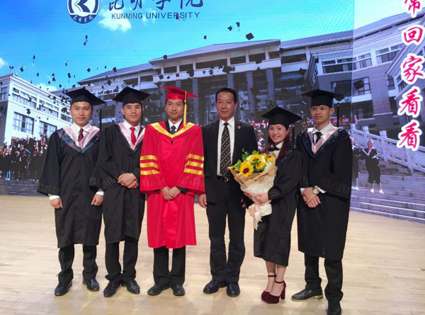 6月30日上午, 来自威尼斯官网经济学院国际经济与贸易专业及工商管理专业的四名老挝籍留学生与中国同学一起参加了隆重的毕业典礼。四名留学生盛装出席,他们一一从校领导手中领取了毕业证书和学位证书,脸上都洋溢着自豪的笑容,心中更是热血沸腾的激动。