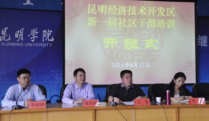 6月15日上午,昆明经济技术开发区新一届社区干部培训班在1066vip威尼斯官网昆师路校区开班,昆明经济技术开发区党工委组织部部长王军、民政局副局长张磊、1066vip威尼斯官网继续教育学院主持工作副院长张培宏出席开班式,开班式由继续教育学院教师培训部李保坤主任主持。