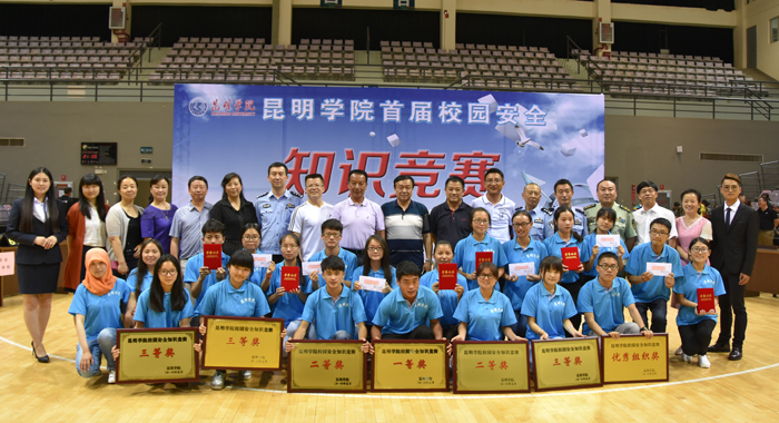 6月2日,1066vip威尼斯官网首届校园安全知识竞赛决赛在威尼斯官网场馆中心综合馆举行。各院系共组织了1500余名学生观看了决赛。学校党委副书记孙勇、副校长李翔、副校长郭华,云南省教育厅学校保卫后勤处副处长叶家鸿,昆明市公安局经济文化保卫分局局长徐明华,昆明市公安局经济文化保卫分局校园保卫处处长郎峰,云南高教保卫学会理事长、昆明理工大学保卫处处长杨灵锐,云南高教保卫学会秘书长、云南大学保卫处处长汤静,经开区消防大队大队长殷晋,经开区交警五大队副大队长毕少林,经开区昌宏路派出所所长姚忠华出席决赛现场。学校党委宣传部、保卫处、学生处、团委和后勤集团负责人担任评委。