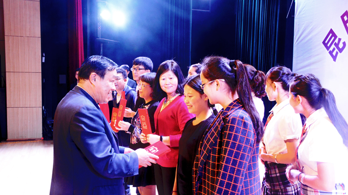 5月25日晚,威尼斯官网第八届大学生心理健康教育宣传月闭幕式在学生会堂顺利举行,学校党委副书记孙勇、副校长郭华出席闭幕式,并为活动中各项比赛的获奖团体和个人颁奖。相关部门领导和各院系书记、副书记,来自18各院系的1000余名学生参加闭幕式。
