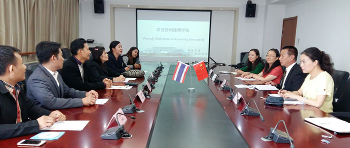 5月4日下午,泰国北碧府皇家大学人文与社会科学学院院长THONG BOONRUENG博士一行6人访问威尼斯官网,学校副校长李翔、国际交流合作处副处长陈静、外国语学院副院长王云秀以及相关教师热情接待并与之会谈,双方初步达成合作意向。