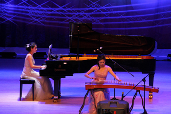 音乐学院鲁林老师的原创合唱作品《新大河涨水沙浪沙》拉开汇报演出帷幕。随后音乐学院的2016届毕业生和教师为观众们献上了精彩的表演,有奔放的佤族群舞,高亢的女声独唱,古典的歌剧选段,国乐经典《梁祝》,柔美的《采薇》群舞,文学性艺术性极佳的《再别康桥》及优雅的四手联弹等。