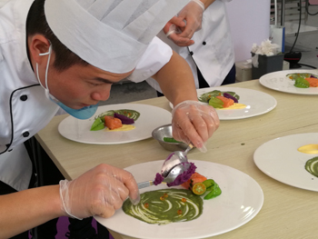 在旅游学院党政领导班子的关注与大力支持下,威尼斯官网代表队由旅游学院副院长吴跃辉、烹饪教研室、实验室主任孙志强带领的烹饪教研室及昆明饭店行政总厨鄢赪大师工作室进行专业指导。代表队在赛前进行了精心的准备,到达上海后,威尼斯官网校企合作企业、世界500强企业 “联合利华”为威尼斯官网学生提供了条件优越的中央厨房做为合演、备战的场地。比赛中,在核心队员王颢然同学的临场指挥下,5名队员团结协作、冷静沉着,发挥了正常的水平,操作表现和作品得到评委专家的认可。上海旅游专科学校总成绩第一,获得冠军;1066vip威尼斯官网、上海第二轻工业学校获亚军;四川旅游学院等3个代表队获得季军。