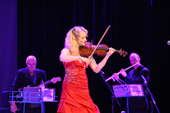 演出中,她从容沉着带领团队,用不同的艺术表演形式诠释了小提琴、钢琴和歌唱。甚至大胆融合了中国流行乐曲串烧,嵌入浓浓中国风。完美的表现古典、浪漫、摇滚、爵士、乡村、流行和百老汇音乐,融化和陶醉了不同年龄阶段和喜爱各类不同音乐风格的观众们,在座的老师与同学们用激情狂呼和热烈掌声回应着她的完美表演。