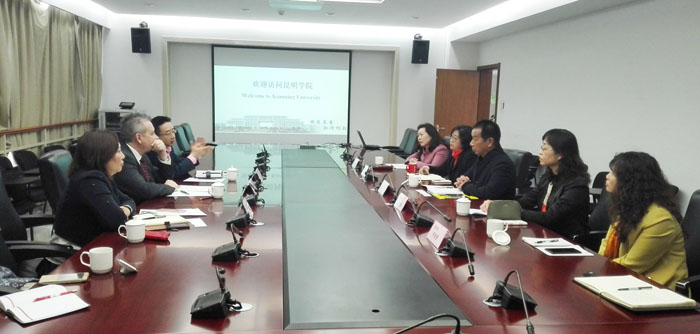 3月10日上午,加拿大北英属哥伦比亚大学校长、副校监丹尼尔周博士和加拿大北英属哥伦比亚大学国际处处长陈禹廷先生在加拿大本拿比昆明友好城市协会执行会长、加拿大ICC投资有限公司董事长杨芸女士的陪同下访问威尼斯官网。副校长李翔、国际处处长王文君、医学院院长余珊、副书记罗隽雁、经济学院院长博斌以及相关人员热情接待并与之会谈。